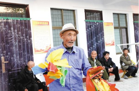 10月14日,在太康縣高朗鄉(xiāng)后高朗行政村的居村聯(lián)養(yǎng)點(diǎn),特困老人正表演自編節(jié)目。為確保貧困老人“老有所養(yǎng)、老有所學(xué)、老有所樂(lè)、病有所醫(yī)、弱有所扶”,太康縣積極探索集中供養(yǎng)、親情贍養(yǎng)、社會(huì)托養(yǎng)、居村聯(lián)養(yǎng)、鄰里助養(yǎng)的“五養(yǎng)模式”,使全縣特困老人晚年幸福有了保障。