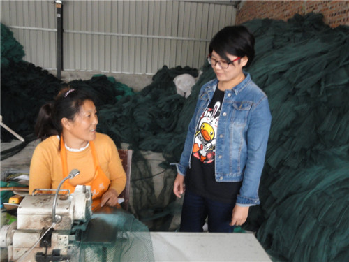 羅林林和丈夫田光輝大學(xué)畢業(yè)后返鄉(xiāng),在當(dāng)?shù)厝舜?、工商?lián)和扶貧辦的幫助下創(chuàng)建了一家生產(chǎn)漁具的公司,為黃寨、舒莊、巴村、鄧城、張莊、白寺等12個(gè)鄉(xiāng)鎮(zhèn)的2萬多名留守婦女、留守老人和貧困群眾提供漁網(wǎng)編織致富門路。喬連軍 攝
