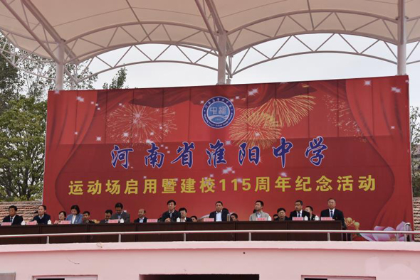 10月20日的淮陽中學校園內(nèi)金菊綻放,彩旗飄揚,洋溢著一派喜慶氛圍。來自全國各地的淮陽中學畢業(yè)生代表和各界嘉賓歡聚在學校新投入使用的運動場,共同見證淮陽中學建校115周年慶典暨新運動場啟動儀式。縣委書記馬明超,縣委常委、宣傳部長謝留定,縣委常委、辦公室主任馮濤,縣人大常委會副主任張凌君,縣政協(xié)副主席李守運以及淮陽中學畢業(yè)生代表、縣直機關(guān)代表、教育系統(tǒng)代表出席慶典儀式。副縣長薛燕主持慶典儀式暨新運動場啟動儀式。