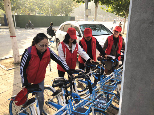 為扎實(shí)推進(jìn)“五城聯(lián)創(chuàng)”工作深入開展,調(diào)動(dòng)廣大市民積極參與“五城聯(lián)創(chuàng)”工作的積極性、主動(dòng)性,我市在中心城區(qū)開展了為期一個(gè)月的“灑掃庭院迎賓客,文明創(chuàng)建我助力”活動(dòng)。圖①為中國(guó)人民銀行職工在清理小廣告。圖②為中國(guó)人壽職工在清掃路面。圖③為市公路局職工在清理綠化帶。圖④為周口師范學(xué)院師生在整理共享單車。