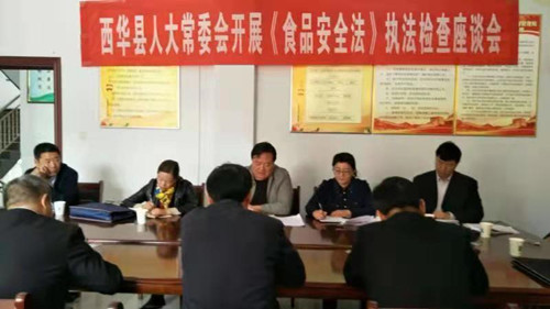 11月2日,西華縣人大常委會副主任趙曉春帶領(lǐng)由部分省、市、縣人大代表組成的執(zhí)法檢查組,對該縣貫徹實(shí)施《中華人民共和國食品安全法》情況進(jìn)行了執(zhí)法檢查??h政府副縣長趙增先及相關(guān)部門負(fù)責(zé)人等陪同。