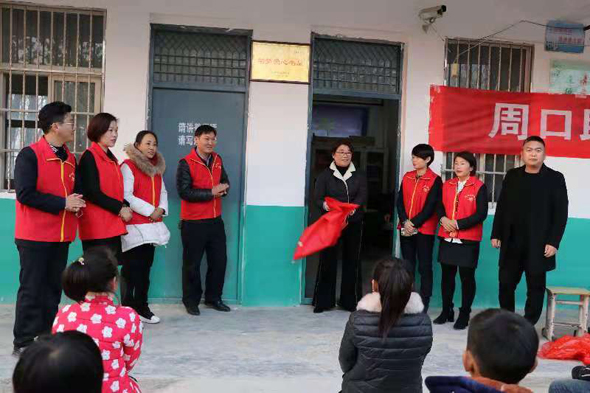 據(jù)了解,楊莊小學(xué)目前有學(xué)生150多名,由于學(xué)校圖書非常緊缺,學(xué)生們的日常學(xué)習(xí)生活非常單調(diào)。今年11月8日,周口助夢(mèng)公益團(tuán)負(fù)責(zé)人在王凱偉回鄉(xiāng)探親之際,到該校為師生講解交通安全知識(shí)時(shí),了解到學(xué)校的情況,便發(fā)動(dòng)公益團(tuán)成員積極為楊莊小學(xué)捐助圖書,并建立全市首座“助夢(mèng)愛心書屋”。