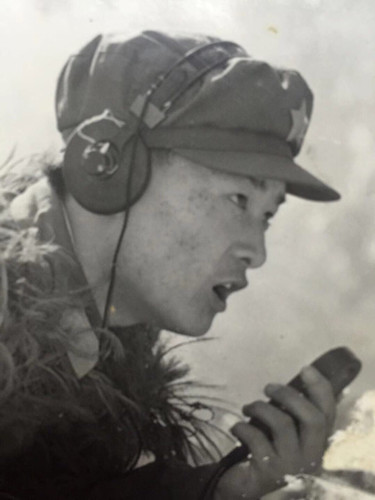 這時候,反撲的敵人越來越近了,蔣慶泉向指揮部的兩名話務(wù)戰(zhàn)士谷德泰和陸洪坤報告了這一情況??粗绯彼惚平臄橙?,蔣慶泉拼盡全力,沖著步話機(jī)嘶吼:“別廢話!向我所在的碉堡頂開炮!”。在陣地暗堡中,幸存的戰(zhàn)士緊緊圍在蔣慶泉身邊,以保護(hù)他向我炮兵指揮部通報目標(biāo)的位置。