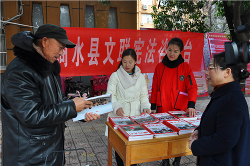 今年12月4日是第五個(gè)國家憲法日,也是我國第一個(gè)“憲法宣傳周”。商水縣依法治 縣工作領(lǐng)導(dǎo)小組辦公室組織40多個(gè)普法依法治理成員單位在縣行政路舉辦“12.4”國 家憲法日集中法治宣傳活動(dòng)。