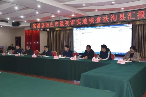 12月3日,貧困縣退出市級(jí)初審實(shí)地核查扶溝縣匯報(bào)會(huì)召開。市級(jí)初審第一實(shí)地核查組組長(zhǎng)劉哲,副組長(zhǎng)毛立營(yíng)、王啟輝、李濤、齊長(zhǎng)軍、陳強(qiáng),監(jiān)督員周萌,聯(lián)絡(luò)員豆筱倩,扶溝縣領(lǐng)導(dǎo)盧偉、張峰、段然、趙紅亮等出席會(huì)議??h委副書記、政法委書記張峰主持會(huì)議。