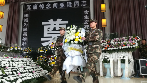 12月8日上午,鄲城縣殯儀館莊嚴(yán)肅穆、哀樂低回。社會(huì)各界人士含淚送別消防英雄——閆亞隆。