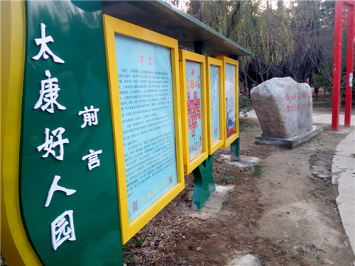 為把好人精神鐫刻在太康發(fā)展和進(jìn)步的進(jìn)程中,把太康建設(shè)成為好人之城、文明之城、和諧之城、美麗之城、幸福之城,從2018年9月起,太康“好人園”經(jīng)過緊鑼密鼓地籌建,如今開園迎賓。好人園緊扣“好人”主題,以道德風(fēng)尚建設(shè)為主線,在休閑公園的基礎(chǔ)上,秉承“因地制宜、因勢利導(dǎo)”的原則,堅(jiān)持寓教于園、寓教于景、寓教于樂,以小處著手、局部微調(diào)的手法,通過“好人步道”“好人亭”“好人樹”“好人大舞臺”“好人精神長廊”五大版塊,將道德風(fēng)尚高地建設(shè)與公園的整體風(fēng)格和功能定位完美結(jié)合。好人園兼顧了公園本身特色與文化傳播需要,利用林蔭小道,以石、亭、牌等基礎(chǔ)設(shè)施為載體,圖文并茂地展示太康近年來獲得國家和省級表彰的道德典型、身邊榜樣的先進(jìn)事跡,一步一景,隨景賦形。市民在游園過程中,潛移默化地接受“真、善、美”的教育和熏陶,激發(fā)人們見賢思齊,榜樣的引領(lǐng)作用不斷放大。