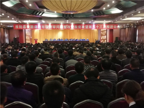 12月18日下午,淮陽縣貧困退出市級初審問題整改暨脫貧攻堅第三十三次推進會召開,通報貧困縣退出市級初審反饋問題,對相關(guān)責任單位和人員進行問責,安排部署市級初審反饋問題整改和迎接國家2018年度脫貧工作成效考核工作。