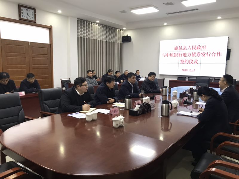12月17日,鹿邑縣人民政府與中原銀行地方債券發(fā)行合作簽約儀式舉行??h委常委、常務副縣長陸志杰,老子學院黨組副書記、交通局局長王初立,中原銀行周口分行黨委副書記、副行長周朝陽出席簽約儀式??h財政局、教體局、住建局、林業(yè)局、發(fā)改委、老子文化產業(yè)園及投資公司等相關單位負責同志參加會議。