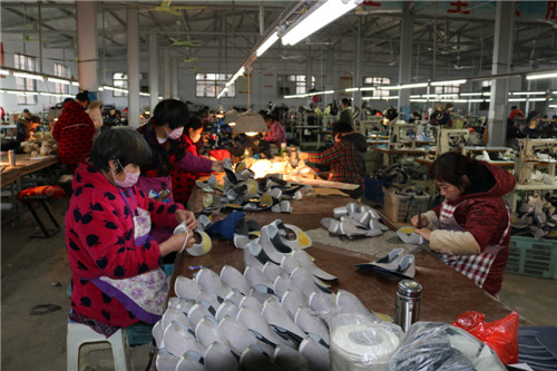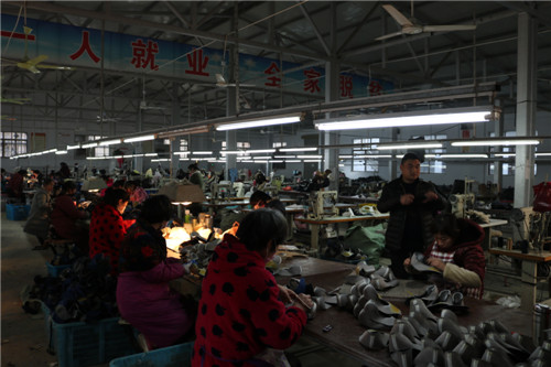 “在這里每個(gè)月可以掙3000多元,雖不如沿海城市掙的多,但從家里到廠里騎車幾分鐘就到,不影響做飯、照顧家。”秦梅英是鹿邑縣楊湖口鎮(zhèn)超琪鞋業(yè)扶貧車間對(duì)口幫扶貧困戶,因兩個(gè)孩子小再加上丈夫兩年前得抑郁癥需要照顧,所以不能外出務(wù)工,因此格外珍惜家門口這份工作。