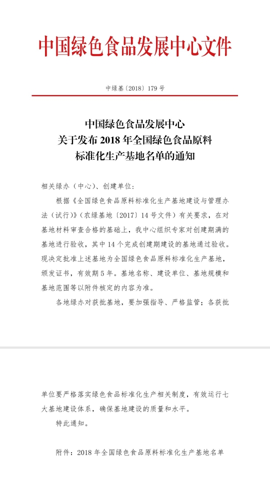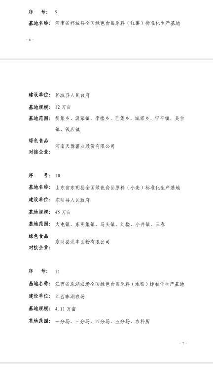 12月30日,中國綠色食品發(fā)展中心發(fā)布2018年全國綠色食品原料標準化生產(chǎn)基地名單,全國14個申報的基地獲批,鄲城縣人民政府在胡集鄉(xiāng)、汲冢鎮(zhèn)、李樓鄉(xiāng)、巴集鄉(xiāng)、城郊鄉(xiāng)、寧平鎮(zhèn)、吳臺鎮(zhèn)、錢店鎮(zhèn)等8個鄉(xiāng)鎮(zhèn)建設,河南天豫薯業(yè)有限公司作為對接企業(yè)的12萬畝紅薯種植基地榜上有名。