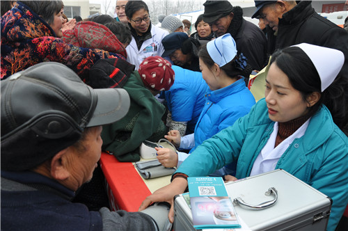 正在排隊(duì)量血壓的馬河村村民馬長(zhǎng)運(yùn)說(shuō):“我今年70多歲,血壓有點(diǎn)高,聽說(shuō)這 里有義診活動(dòng),一大早便來(lái)這里等待了?!?/p>