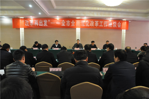 1月9日,“改革再出發(fā)”— 全市全面深化改革工作座談會在商水召開。會議對40年來全市改革開放取得的顯著成績和變化進(jìn)行暢談式總結(jié)回顧,對今后一個(gè)時(shí)期深化改革工作進(jìn)行相互啟發(fā)式思考謀劃。
