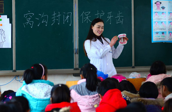 為加強(qiáng)口腔疾病健康教育和健康促進(jìn)工作,提高兒童口腔疾病防治知識知曉率,近日,鄲城縣疾控中心組織口腔專業(yè)技術(shù)人員,到第三實驗小學(xué)開展“鄲城縣健康口腔助成長口腔健康教育活動”和“鄲城縣兒童口腔疾病綜合干預(yù)項目進(jìn)校園活動”。在活動現(xiàn)場,口腔醫(yī)師為二年級學(xué)生上了三場生動的口腔健康教育課,詳細(xì)講解口腔疾病防治知識。