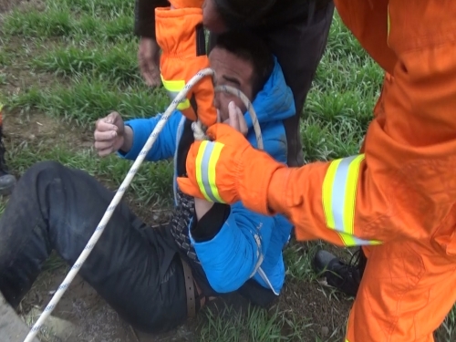 “氣溫很低,而且男子已經(jīng)在井下水里泡了一夜,好在他的意識(shí)還比較清醒?!毕乐嘘?duì)長(zhǎng)李輝說(shuō),經(jīng)過(guò)交談,他們采取下繩套的辦法,讓男子自行把手腕伸進(jìn)繩套內(nèi),然后大家齊心協(xié)力把他拉了上來(lái)。