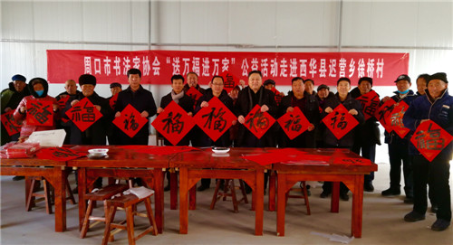 迎新春走基層,進(jìn)萬家送萬福。1月16日,周口市書法家協(xié)會的書法家們走進(jìn)西華縣遲營鄉(xiāng)徐橋村,舉行走基層送祝?;顒印覀儸F(xiàn)場揮毫潑墨,一個個“?!弊周S然紙上,給基層群眾送去新春祝福。