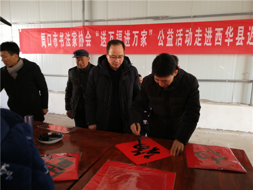 “‘迎新春走基層,進(jìn)萬家送萬?!顒右堰B續(xù)開展多年,今年市書協(xié)持續(xù)開展,就是為了進(jìn)一步弘揚傳統(tǒng)文化,普及書法知識,助推扶貧攻堅,為周口這座文化名城建設(shè)作出應(yīng)有的貢獻(xiàn)。”周口市書協(xié)主席王猛仁說。