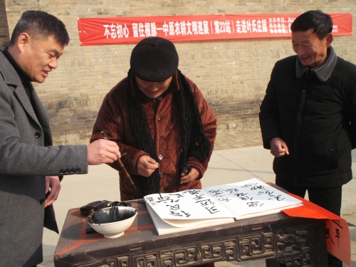 鄧城鎮(zhèn)范莊村72歲的范長(zhǎng)印老人觀展后感觸頗深地說:“這些展品我很多都見過、用過,不過用起來真費(fèi)勁真受罪??!現(xiàn)在農(nóng)忙季節(jié)機(jī)器一響,糧食嘩啦啦就進(jìn)家了。我這個(gè)年齡的人最能體會(huì)到咱們國(guó)家的進(jìn)步和社會(huì)的美好!”隨后,老人在留言薄上用握慣農(nóng)具的粗糙大手握起毛筆寫下了“新時(shí)代,得民心”幾個(gè)字。字雖不工整但他的滿腔真情感動(dòng)了在場(chǎng)的群眾,大家把熱烈的掌聲送給范長(zhǎng)印老人。