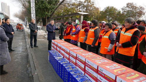 慰問中,皇甫立新、劉國慶一行首先來到新區(qū)“三公開”廣場,慰問堅守一線的環(huán)衛(wèi)工人,向他們致以新春的祝福,并對他們在過去一年里付出的辛勤勞動表示衷心感謝?;矢α⑿轮赋觯荒陙?,環(huán)衛(wèi)工人們起早貪黑、兢兢業(yè)業(yè),為改善居民生活環(huán)境和提升城市形象付出很多心血和汗水,取得了良好效果,城區(qū)環(huán)境和城市面貌有了很大改善,得到了社會各界的一致好評,希望環(huán)衛(wèi)工人們在春節(jié)期間繼續(xù)發(fā)揚奉獻精神,把縣城衛(wèi)生打造的更加干凈、整潔,讓廣大市民和回家過年的群眾能深刻感受到縣城環(huán)境的新變化,過一個干凈舒適愉快的春節(jié)。