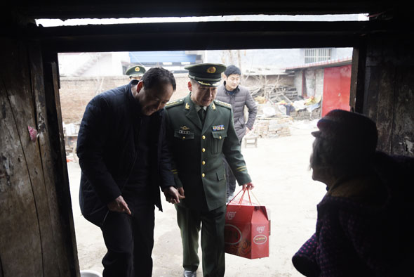商水縣湯莊鄉(xiāng)付樓村是武警周口支隊的精準扶貧村,今年春節(jié)期間,武警周口支隊支隊長楊大嶺帶著周口支隊愛民小分隊再次來到了村中,送上大米、面粉、油等生活物資,更是送來了生活上的幫助和情感上的關(guān)懷。
