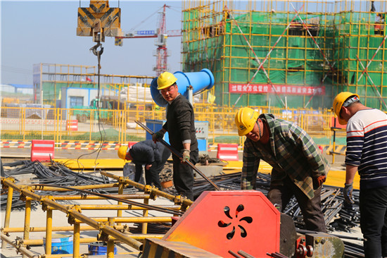 當日上午,記者在施工現(xiàn)場看到,塔吊林立,機械轟鳴,運輸車來來回回在現(xiàn)場穿梭,霧炮、噴淋設施配合作業(yè),工人們緊張有序的忙碌著,整個施工現(xiàn)場呈現(xiàn)出一派熱火朝天的景象。