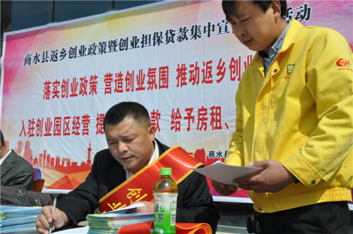 3月18日上午,商水縣人社局和縣郵儲(chǔ)銀行聯(lián)合在省級(jí)農(nóng)民工返鄉(xiāng)創(chuàng)業(yè)示范園區(qū)周口汽配城開(kāi)展創(chuàng)業(yè)補(bǔ)貼、創(chuàng)業(yè)擔(dān)保貸款優(yōu)惠政策宣傳。