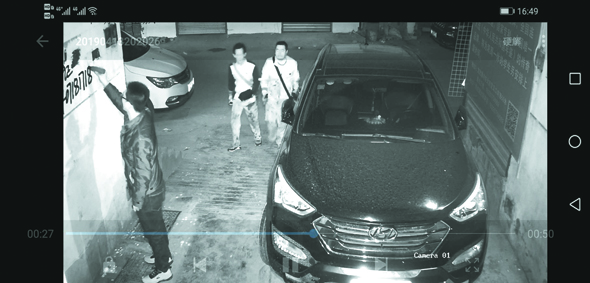 監(jiān)控視頻顯示,4月13日3時(shí)21分,3名男子來到項(xiàng)城市仁和街一家屬院門前,分別在墻上涂畫小廣告。