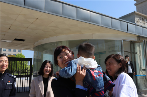 過了一會(huì)兒,微信群里傳來消息,稱小男孩是小區(qū)一居民的親戚,家人正在急切尋找。陳愛華趕緊領(lǐng)著孩子下樓,在小區(qū)門口見到心急如焚的孩子父母,并把孩子交給他們。母子相擁而泣,并連聲向陳愛華道謝。