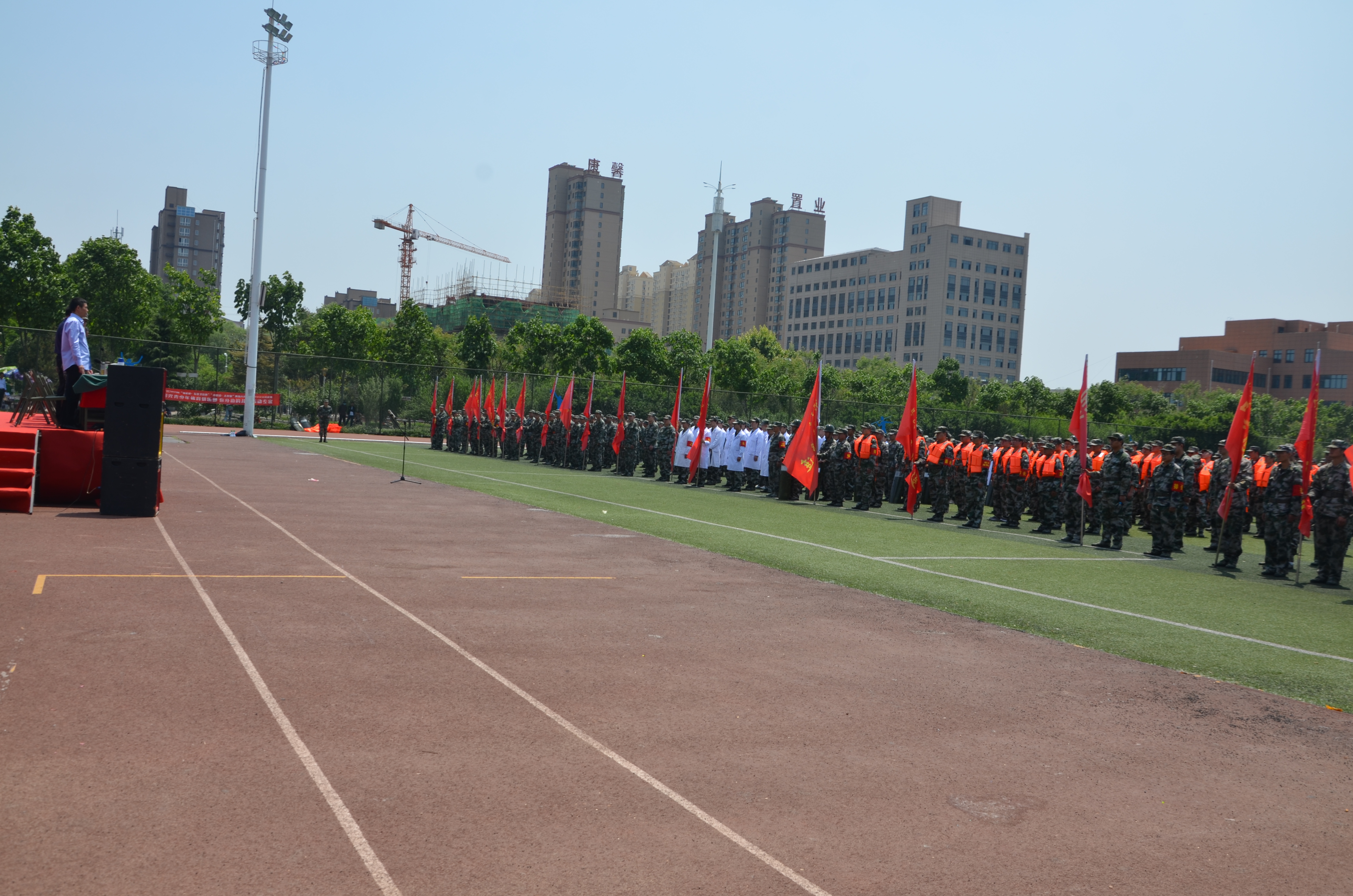 5月10日上午,沈丘縣體育場上紅旗招展、隊列整齊,民兵同志全副武裝、精神抖擻。綜合應急分隊、防汛抗洪分隊、應急防爆分隊、醫(yī)療救護分隊和22個鄉(xiāng)鎮(zhèn)民兵應急排近千名基干民兵參加了沈丘縣2019年基干民兵集中點驗暨開訓動員大會。