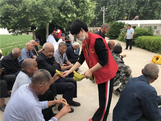 當(dāng)天上午,周口助夢公益團20余名志愿者來到西華縣大王莊鄉(xiāng)中心敬老院,為37名老人帶來了自發(fā)捐款購買的鞋子、毛巾、襪子、香皂、臉盆、香蕉、西瓜等價值近2000元的愛心物資。