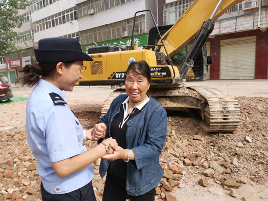 “創(chuàng)衛(wèi)不留死角,想盡辦法也要給市民良好的出行體驗?!笔泄簿终匍_黨委會議專題研究建新路西段附近居民出行問題,發(fā)出“克服困難、自掏腰包、推倒違建、平整道路”的指令,號召全警幫助居民實現(xiàn)安全出行?!斑@些民警、社區(qū)干部都跟我的孩子差不多大,看著他們頂著大太陽清理雜物,夜里還在加班加點工作,我給他們說‘孩子來家喝口水,吃個飯’他們都笑著拒絕了。真感謝他們,也心疼他們。”說起“創(chuàng)衛(wèi)”以來,市公安局民警和社區(qū)干部的工作,70多歲的智老太眼含熱淚。