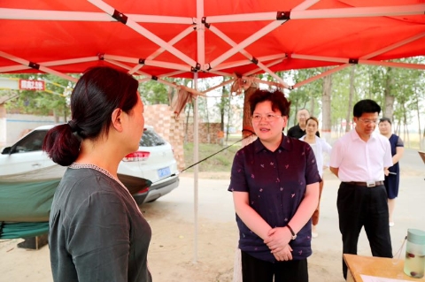 “今年小麥產(chǎn)量怎么樣?”“俺村一般畝產(chǎn)在1000斤至1200斤,最少的也不低于800斤?!薄皩斩捊麩銈兌疾扇×四男┚唧w措施?”“村里規(guī)定,秸稈一律不許進村。收割機直接把秸稈直接打成捆后,賣給縣國能生物發(fā)電公司?!痹诤袜崬炒妩h支部書記趙迎禮的問答中,張穎波對麥?zhǔn)障嚓P(guān)工作進行了詳細了解。據(jù)天氣預(yù)報,近日扶溝將迎來一場中到大雨,給麥?zhǔn)展ぷ鲗聿焕绊?,張穎波對此甚為關(guān)注。她叮囑鄉(xiāng)村干部要搶抓時間,組織機械、人工加大麥?zhǔn)樟Χ?,確保成熟小麥“顆粒歸倉”。對缺少勞動力的貧困戶等,鄉(xiāng)村干部要加強幫扶,發(fā)動群眾助收,不讓每一戶群眾為收麥發(fā)愁。