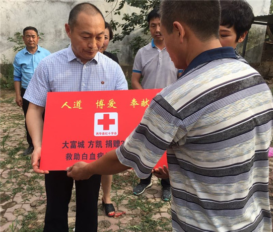 西華縣副縣長(zhǎng)張翠霞、西華縣紅十字會(huì)秘書長(zhǎng)趙紅霞等人聞?dòng)嵹s來(lái),參加簡(jiǎn)短的捐款儀式,并代表縣政府和紅十字會(huì)對(duì)方凱的善舉表示感謝。