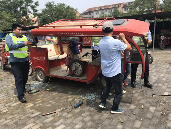 嚴(yán)管形成了高壓態(tài)勢(shì),厚愛更維護(hù)了鄲城縣文明執(zhí)法的良好形象。該縣規(guī)定,對(duì)家用電動(dòng)三輪車、電動(dòng)四輪車進(jìn)入縣城禁行區(qū)域的,文明執(zhí)法,不予處罰,以暫扣警示、宣傳勸導(dǎo)為主。對(duì)于從事非法營(yíng)運(yùn)的電動(dòng)兩輪車、電動(dòng)三輪車、電動(dòng)四輪車車主不予經(jīng)濟(jì)處罰,車棚自愿切割后放行。對(duì)于老弱病殘等特殊情況及時(shí)匯報(bào)領(lǐng)導(dǎo),酌情處理。