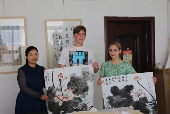 鹿邑本土畫家劉龍飛畫的花鳥栩栩如生引起俄羅斯青年畫家們的嘖嘖稱嘆。兩位青年畫家通過(guò)翻譯告訴記者,中國(guó)畫歷史悠久、博大精深,看到兩位老師的畫作形神兼?zhèn)?,氣韻生?dòng),真是不虛此行,感謝贈(zèng)送的佳作,他們一定珍藏。據(jù)悉,本次活動(dòng)他們將以國(guó)際藝術(shù)志愿者的身份、以西方人的視角描繪老子故里的美景,他們走進(jìn)明道宮、太清宮等景點(diǎn)實(shí)地寫生,并走美術(shù)學(xué)校為孩子們輔導(dǎo)繪畫并帶來(lái)世界名校的繪畫理念。