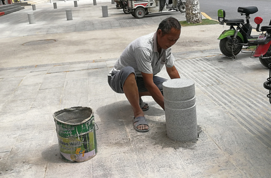 7月9日上午,工人正在八一大道兩側(cè)的人行道上安裝隔離石樁。為杜絕機動車占用人行道,相關(guān)部門近日陸續(xù)在中心城區(qū)多條主干道兩側(cè)的人行道上安裝隔離石樁。市民紛紛表示,安裝隔離石樁讓人行道更通暢了,也使城市更有序了。 記者 關(guān)秋麗 攝