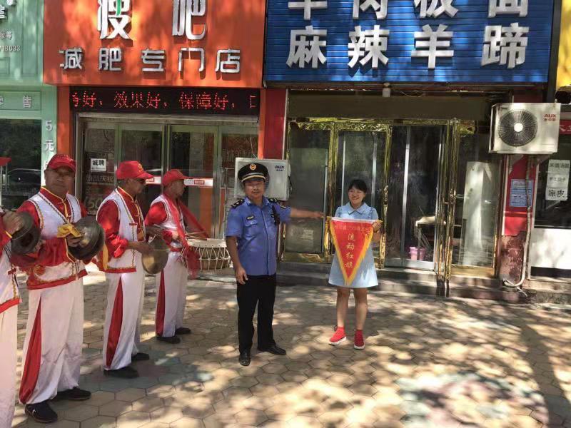 為鞏固創(chuàng)衛(wèi)成果,提高城市精細(xì)化管理水平,川匯區(qū)持續(xù)開(kāi)展“紅黑旗”評(píng)選活動(dòng)。7月22日,在陣陣鑼鼓聲中,該區(qū)城管人員又為6家紅旗商戶、6家黑旗商戶分別懸掛紅黑旗。