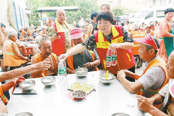為幫助環(huán)衛(wèi)工做好防暑降溫工作,7月23日,太康縣總工會到該縣“愛心粥屋”看望慰問環(huán)衛(wèi)工人,并捐贈1萬元現金和價值6000元的毛巾、礦泉水。圖為該縣總工會志愿者為環(huán)衛(wèi)工發(fā)放礦泉水。
