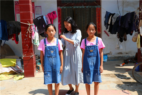 這次來看望“女兒”,王冬特意給小姐妹倆購買了幾件新衣服、鞋和一些書籍。穿上新衣服和鞋子,姊妹倆高興得手舞足蹈?!巴趵蠋?,你待她們給親閨女一樣,每次來都不忘給她們買東西。我們真不知道向你說啥好了?!笨粗鴤z孫女被王冬打扮的如此美麗好看,王肖晴的爺爺王客臣感動(dòng)得連連向王冬道謝。