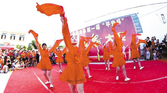 8月25日下午,市城鄉(xiāng)一體化示范區(qū)許灣鄉(xiāng)彭樓行政村文化廣場,舞姿婀娜,鼓聲雷鳴,笑語盈盈,該村千名農(nóng)民以廣場舞大賽的形式,喜迎新中國70華誕和即將到來的中國農(nóng)民豐收節(jié)。記者 梁照曾 攝