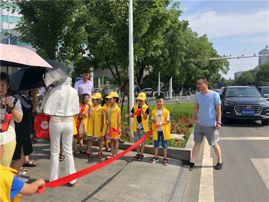 “叔叔,這個(gè)框子不能擺在路邊哦,垃圾也要倒在垃圾桶里,我給您發(fā)一個(gè)文明倡議書,您看一下”,“奶奶,不能橫穿馬路喲,紅燈停,綠燈行,要注意交通安全喲”......7月20日,35名小小志愿者來到古城社區(qū),參加古城社區(qū)小太陽志愿服務(wù)隊(duì)創(chuàng)文主題活動(dòng)。一個(gè)個(gè)身穿黃色馬甲的小小身影成為馬路上一道靚麗的風(fēng)景線。