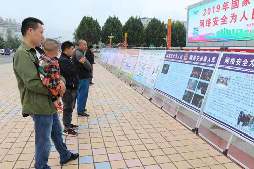 當(dāng)日上午,下了一夜的中雨終于逐漸停止。在縣人民廣場(chǎng)北側(cè),數(shù)十塊網(wǎng)絡(luò)安全宣傳展板一字排開,展板前,圍滿了打著雨傘的居民,他們仔細(xì)閱讀著展板上的內(nèi)容。有的還拿出手機(jī)不停地拍照。宣傳臺(tái)前,縣網(wǎng)信辦工作人員封中偉、曹超勇等人,一邊給群眾發(fā)放宣傳資料,一邊向群眾講解網(wǎng)絡(luò)安全知識(shí)。工作人員講得仔細(xì),群眾聽得認(rèn)真。