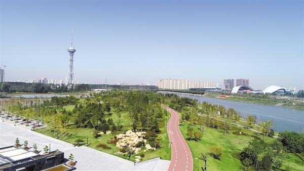 據(jù)了解,沙潁河公園一期總投資19.3億元,西起周口大道,東至武盛大道,全長5.5公里,建設(shè)內(nèi)容主要是景觀工程、堤防工程、河道護(hù)砌工程、道路工程。南北兩岸景觀總面積211公頃,其中綠化面積172公頃,硬化面積39公頃,綠地率81.5%,單側(cè)景觀最寬處500米,最窄處100米,栽植各種喬木、灌木、應(yīng)季花草、草皮等,實現(xiàn)三季有花、四季常青。