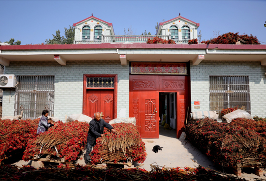 “大伙兒別著急啊,讓我喝口水喘喘氣再來(lái)給你們的小辣椒過(guò)磅……”在西華縣艾崗鄉(xiāng)苗里崗行政村一家村辦炕椒廠院內(nèi),老板郭有明忙得汗流浹背。來(lái)賣辣椒的村民隊(duì)伍都排到院外了,他擰開(kāi)一瓶礦泉水喝個(gè)精光后又忙起來(lái)。