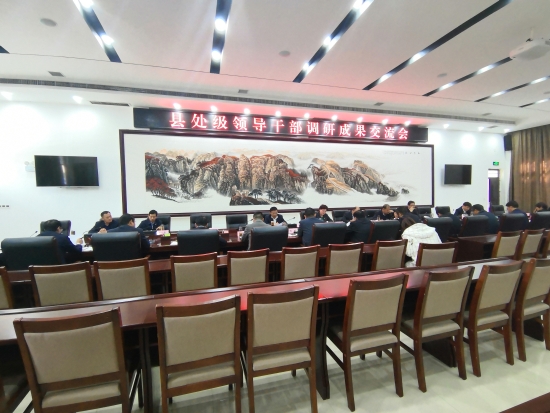10月29日,扶溝縣召開處級領(lǐng)導(dǎo)干部調(diào)研成果交流會和縣委理論學(xué)習(xí)中心組對照黨章黨規(guī)找差距專題會。縣處級領(lǐng)導(dǎo)干部就調(diào)研發(fā)現(xiàn)的問題、提出的思路和解決的辦法進行總結(jié)交流,對照黨章黨規(guī)查找自身存在的突出問題,進行檢視整改,將主題教育轉(zhuǎn)化為解決問題的具體行動??h委副書記、縣長張穎波主持會議。