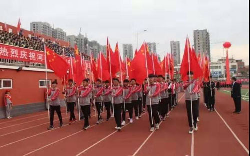 校長高遠征在致辭中希望全體同學積極參與運動會,為賽場運動員加油、鼓勁,爭做文明觀眾,充分展現(xiàn)百年名校良好的校風,并把運動會的理念落實到實際生活中去,運動起來,讓自己的生活多彩起來。