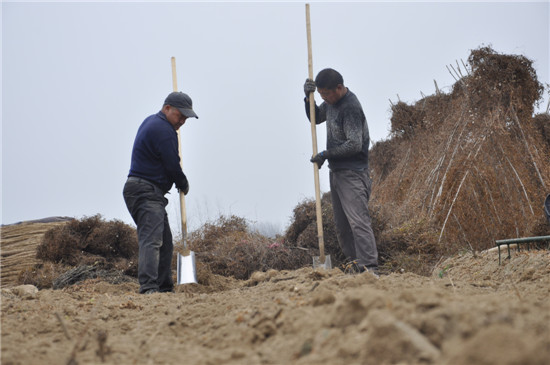 他從最早用尖頭鋼鍬開始,逐漸改為扁頭鋼鍬,再改用目前的鋼筒鍬。耿金中說,挖山藥是一個體力活,也是一項(xiàng)技術(shù)活,挖山藥多少跟個人技術(shù)熟練程度有關(guān),因?yàn)樯剿幒艽啵昧Ψ执?、下鍬角度及深淺不合適都易造成山藥折斷,影響品質(zhì)。