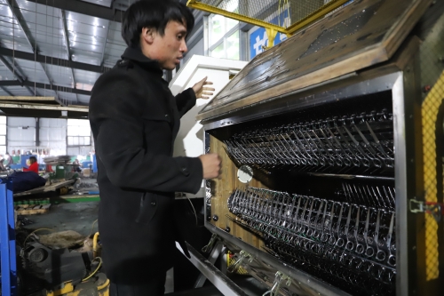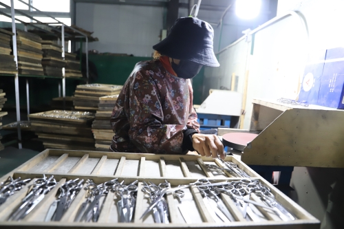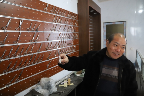 “我也是從小就外出,一直在江蘇蘇州發(fā)展,做刀剪十幾年了?,F(xiàn)在家鄉(xiāng)環(huán)境好,回來發(fā)展比在南方還有前途?!苯衲?9歲的陳政治老家是虎崗鄉(xiāng)陳莊村。被虎崗鄉(xiāng)黨委政府的誠意所感動,他很樂意回鄉(xiāng)發(fā)展,因?yàn)榉孔鈨r(jià)格低、務(wù)工人員穩(wěn)定,營商環(huán)境又好,所以他帶著自己的外甥楊亞杰和技術(shù)團(tuán)隊(duì)回到老家鄲城,還能助力家鄉(xiāng)經(jīng)濟(jì)發(fā)展。陳政治說,他的廠子所生產(chǎn)的東升、jack、亞寶等品牌刀剪全部銷往全國高檔理發(fā)店,產(chǎn)品供不應(yīng)求。像這樣的高檔刀剪生產(chǎn)廠家,在中原地帶極少。剛投產(chǎn)幾個(gè)月,他已經(jīng)接到了來自韓國、日本等地的訂單。