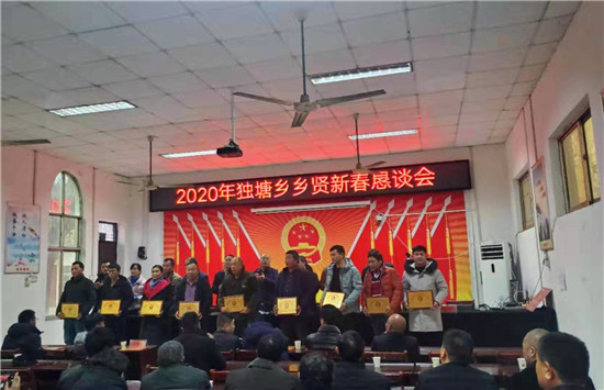 懇談會由鄉(xiāng)黨委書記高毓明主持,首先,鄉(xiāng)長劉衛(wèi)亞向參會人員介紹了獨塘鄉(xiāng)過去一年的發(fā)展、變化和取得成績。其次,為8位“最美鄉(xiāng)賢”和10位“最美創(chuàng)業(yè)之星”舉行了頒發(fā)獎牌、證書儀式,“最美鄉(xiāng)賢”和“最美創(chuàng)業(yè)之星”代表作了典型發(fā)言。會上,各位鄉(xiāng)賢各抒己見、暢所欲言,為獨塘鄉(xiāng)未來發(fā)展提出了很多寶貴的意見和建議,一致表示一定會積極發(fā)揮自身作用,助力獨塘鄉(xiāng)經濟社會各項事業(yè)穩(wěn)步發(fā)展。