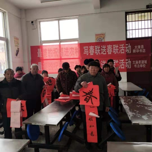 1月22日,在中原出版?zhèn)髅郊瘓F(tuán)公司開展的“最美讀書聲”最美的祝福“七進(jìn)” 活動(dòng)精神指導(dǎo)下,太康縣新華書店有限公司走進(jìn)太康縣建南社區(qū)開展“書寫春天 溫暖社區(qū)”迎新春活動(dòng),為社區(qū)居民寫春聯(lián)、送春聯(lián)。